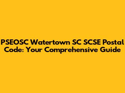 PSEOSC Watertown SC SCSE Postal Code: Your Guide