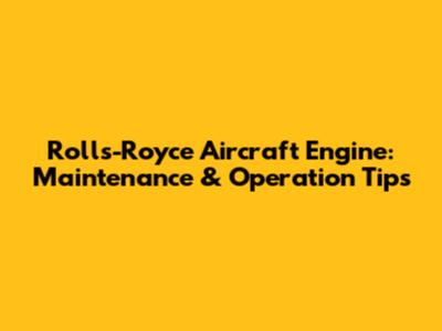 Rolls-Royce Engine: Maintenance & Operation Tips