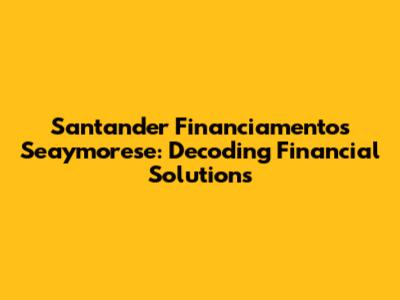 Navigating the world of Santander Financiamentos, particularly the intricacies of Seaymorese solutions, can feel like deciphering a complex code. But don't worry, guys! This article aims to break down everything you need to know in a clear, engaging way. We're diving deep into what Santander Financiamentos offers, specifically focusing on the Seaymorese aspect, and how it can potentially benefit you. Whether you're looking to finance a car, a home, or simply understand your options better, consider this your go-to guide.