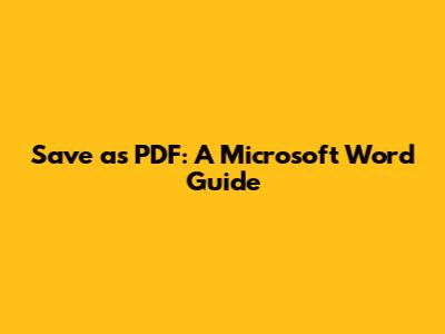 Save As PDF: A Microsoft Word Guide