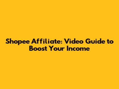 Shopee Affiliate: Video Guide To Boost Your Income