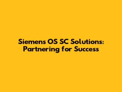 Siemens OS SC Solutions: Partnering For Success