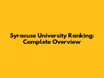 Syracuse University Ranking: Complete Overview