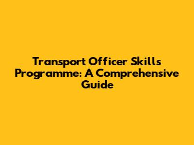 Transport Officer Skills Programme: A Comprehensive Guide