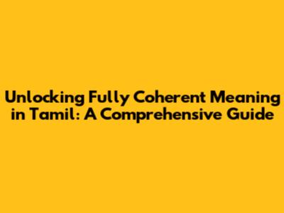 Unlocking Fully Coherent Meaning In Tamil: A Comprehensive Guide
