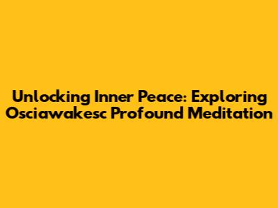 Unlocking Inner Peace: Exploring Osciawakesc Profound Meditation