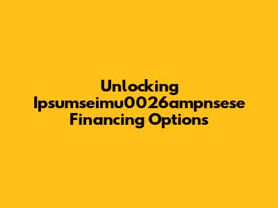 Unlocking Ipsumseimu0026ampnsese Financing Options