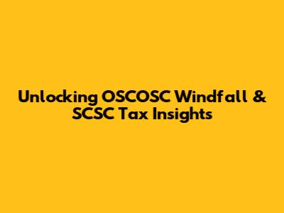 Unlocking OSCOSC Windfall & SCSC Tax Insights