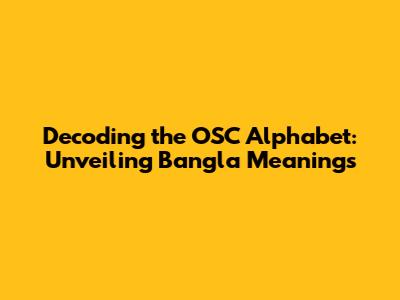 Unlocking The Secrets: OSC Alphabet And Its Bangla Meanings