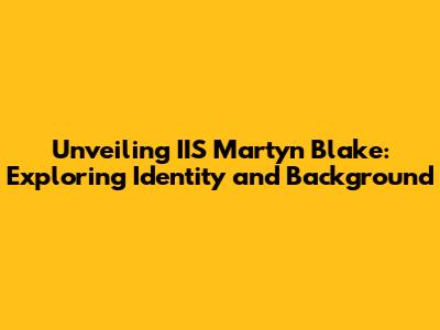 Unveiling IIS Martyn Blake: Exploring Identity And Background