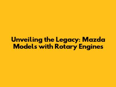 Unveiling The Legacy: Mazda Models With Rotary Engines