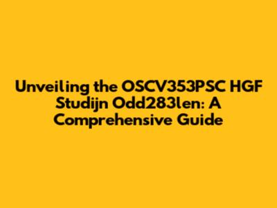Unveiling The OSCV353PSC HGF Studijn Odd283len: A Comprehensive Guide