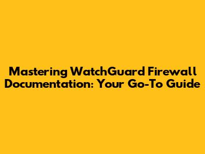 Hey there, network security gurus! Today, we're diving deep into something super important for anyone managing network defenses: WatchGuard firewall documentation. You know, those manuals, guides, and online resources that can sometimes feel like a jungle? Well, think of me as your trusty machete, ready to clear a path so you can navigate them like a pro. We'll break down why this documentation is your secret weapon and how to use it to keep your networkFort Knox-level secure. It’s not just about knowing how to configure your WatchGuard firewall; it’s about understanding the why behind every setting, every policy, and every feature. This deep understanding, readily available in the documentation, is what separates a good network administrator from a great one. We're talking about proactively identifying threats, optimizing performance, and ensuring compliance, all with the help of the resources WatchGuard provides. So, buckle up, grab your favorite beverage, and let's get started on making those docs work for you, not against you. We’ll cover everything from the absolute basics to some more advanced tips and tricks to really squeeze every drop of value out of these essential resources.
